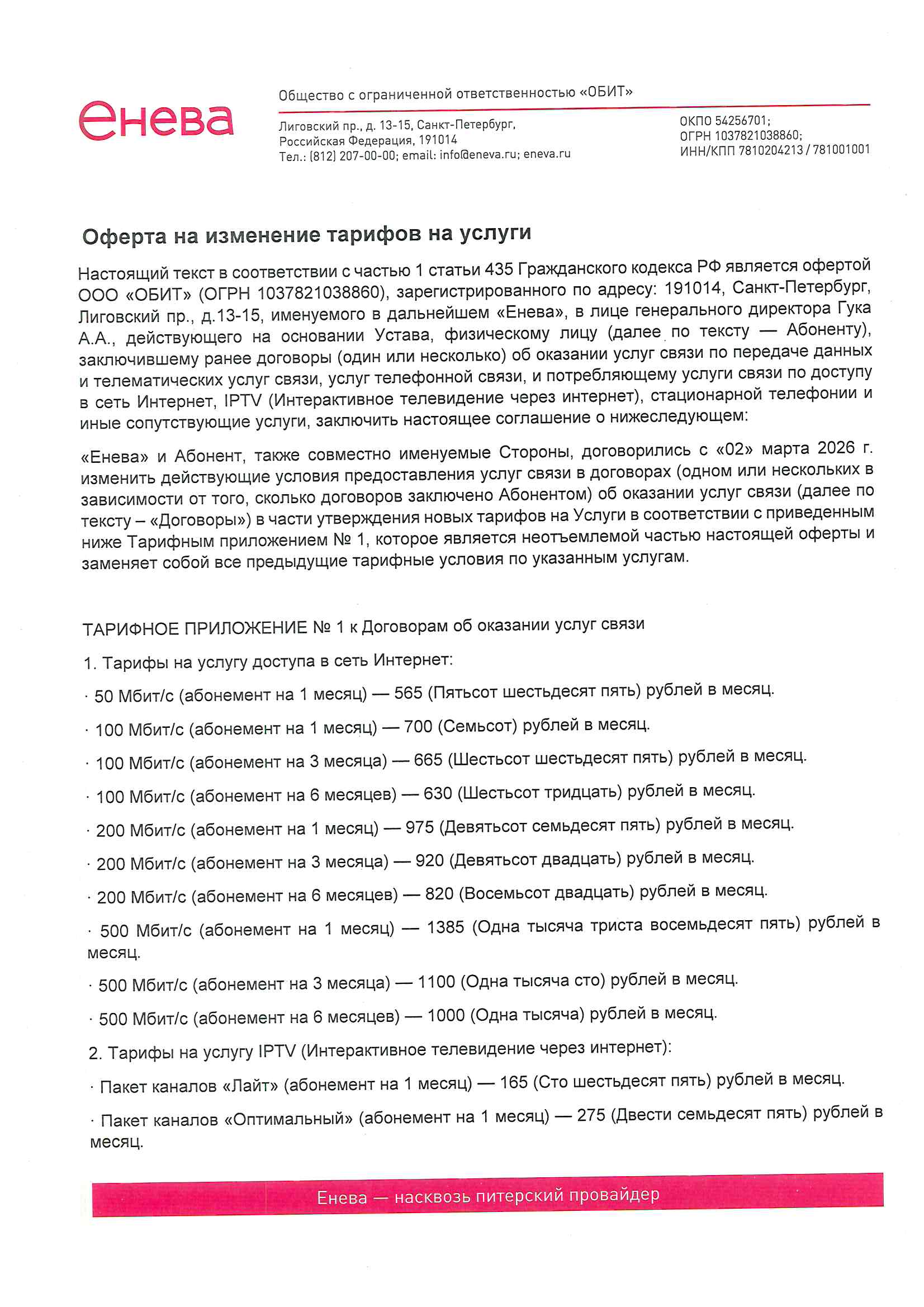 Адрес почтовый: 191014, Санкт-Петербург, Лиговский проспект, д. 13-15 , ООО «ОБИТ»